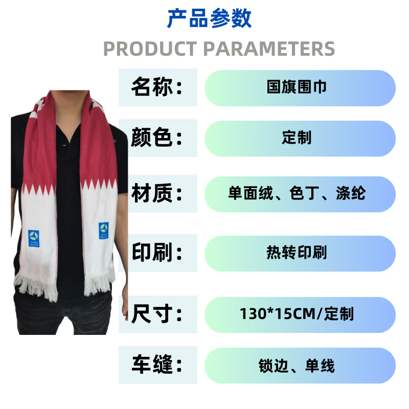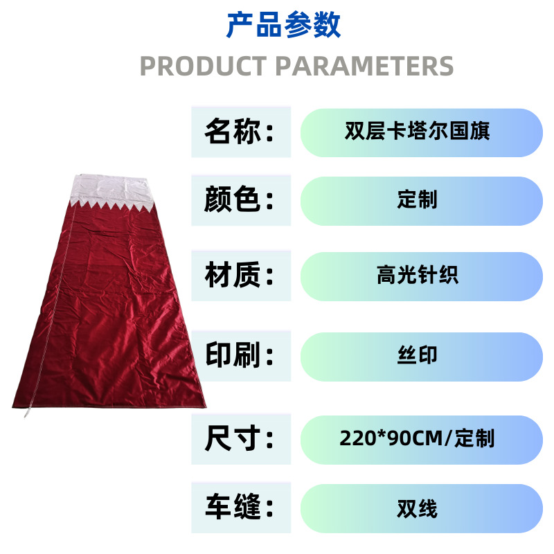 Customized Qatar Flag High gloss Knitted Polyester Fabric Qatar World Cup Flag Customized Table Flag Scarf Flag