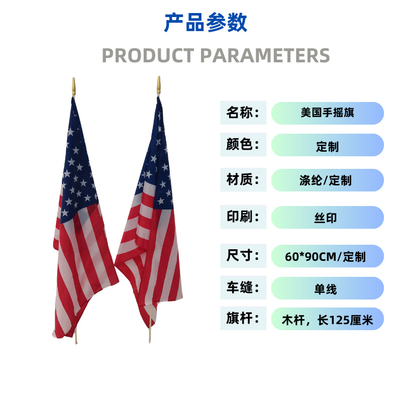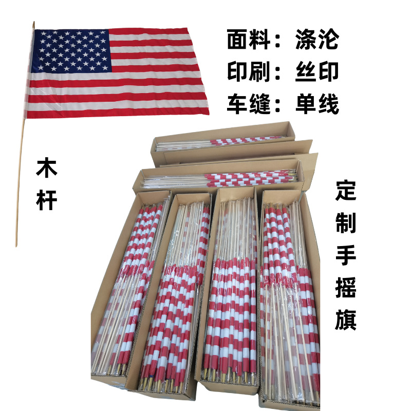 American hand cranked flag 60 * 90CM wooden pole 125CM American Independence Day hand waving flag World Cup flag customization